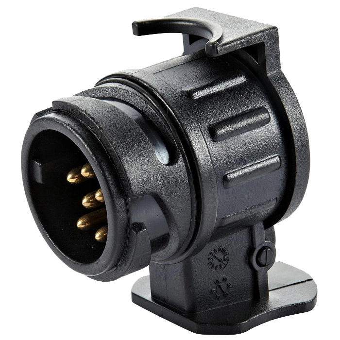Denne adapter omdanner bilens elektriske 13 pols udtag til et 7 pols udtag.